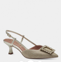 Zapato abierto de tacón de Tamaris en color negro para mujer. Este modelo está diseñado para aportar la máxima comodidad y estilo en tus ocasiones más especiales. Estos zapatos de salón cuentan con un tacón bajo y una correa ajustable.