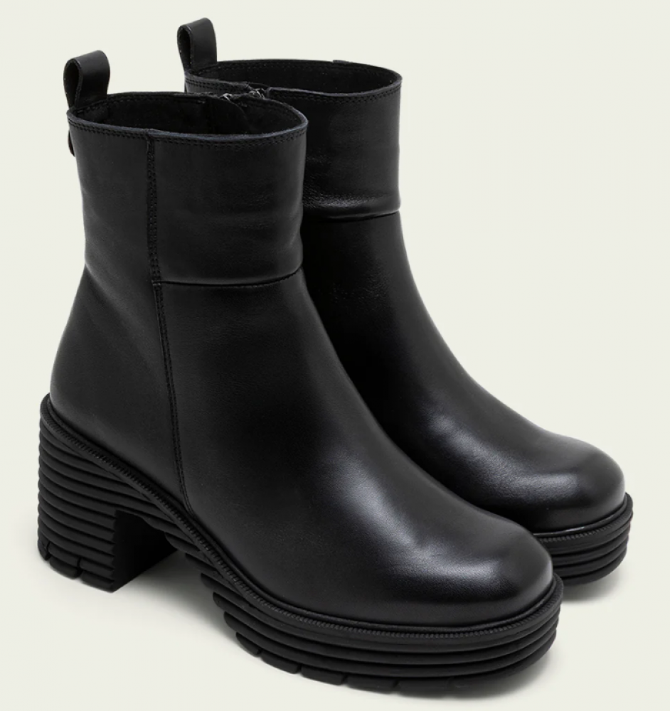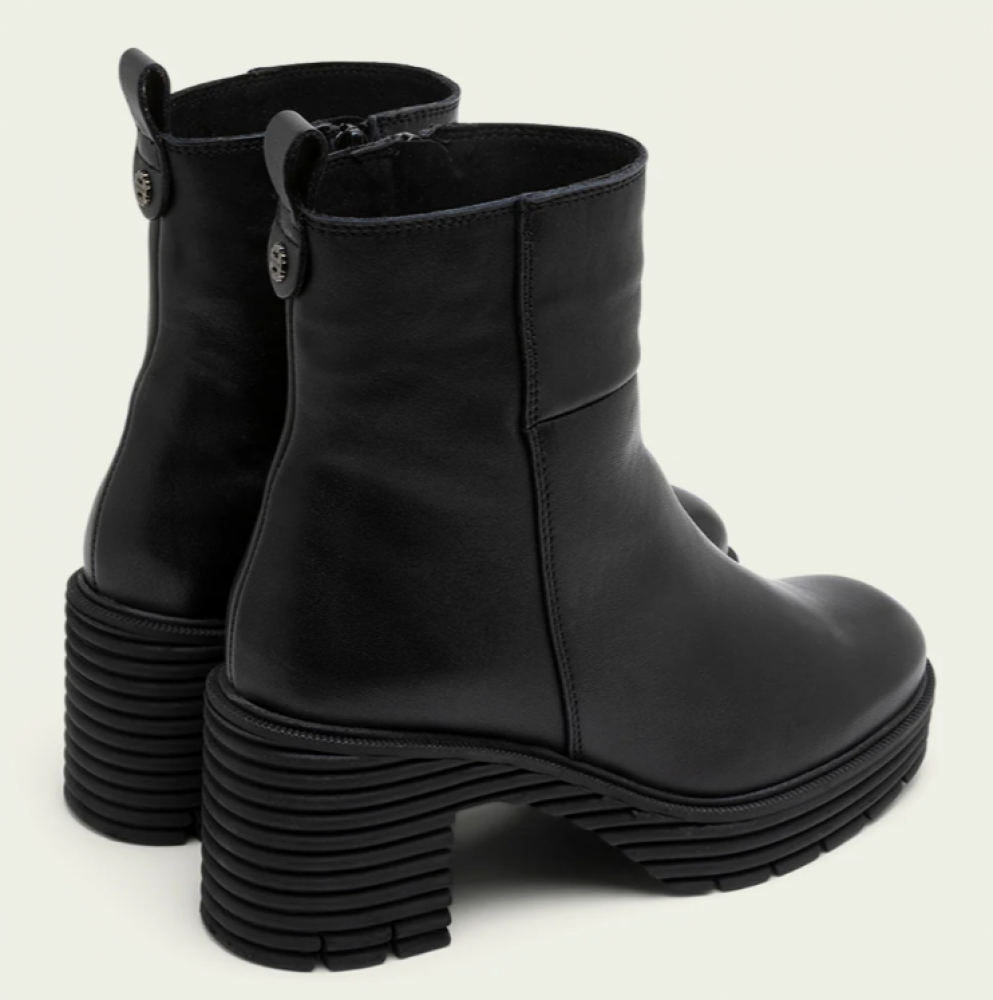 Botines de piel con piso track con tacón de 6,5 cm y plataforma de 2,5 cm. Cremallera lateral interior para facilitar el calce. Plantilla y forro de microfibra con acabado confort aterciopelado. Elaborado 100% en España.